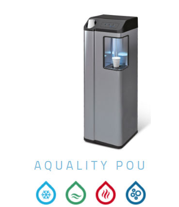 El dispensador de agua Aquality POU es un equipo para dispensar agua fria y gasificada, ideal para espacios de oficina.
